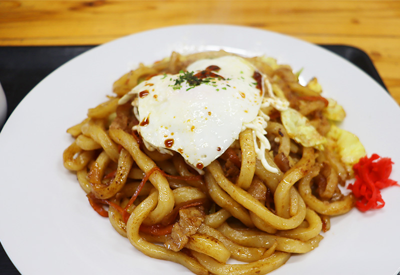 あぐりの手打ち麺は、焼うどんはモチモチ、温麺はやわらかくなるよう作っております。